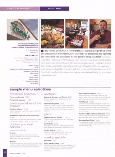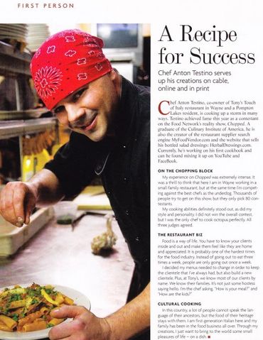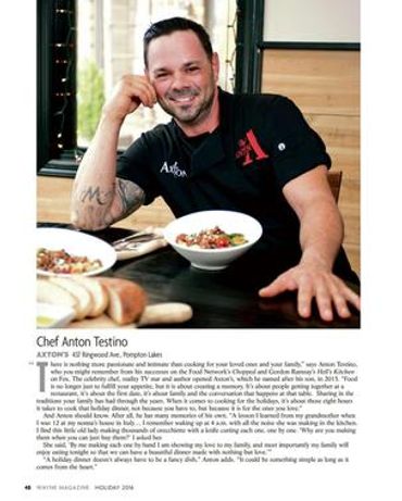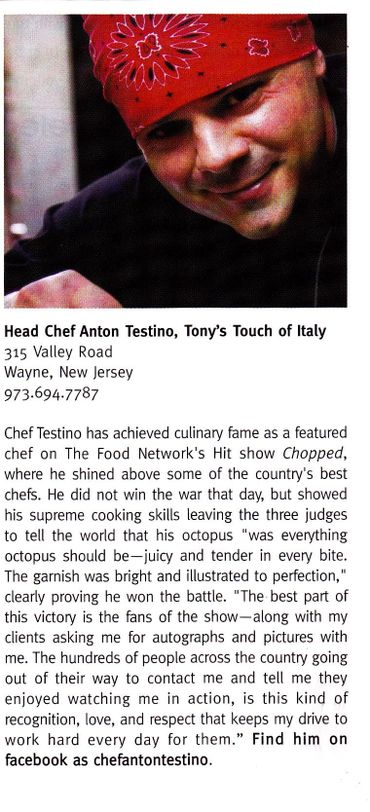 One of New Jersey's top Executive Chefs, Anton Testino, best known for competing on Food Network's Chopped, and Gordon Ramsay's Hell's Kitchen , Has Worked his way to become one of New Jersey best Chefs and Restaurateur